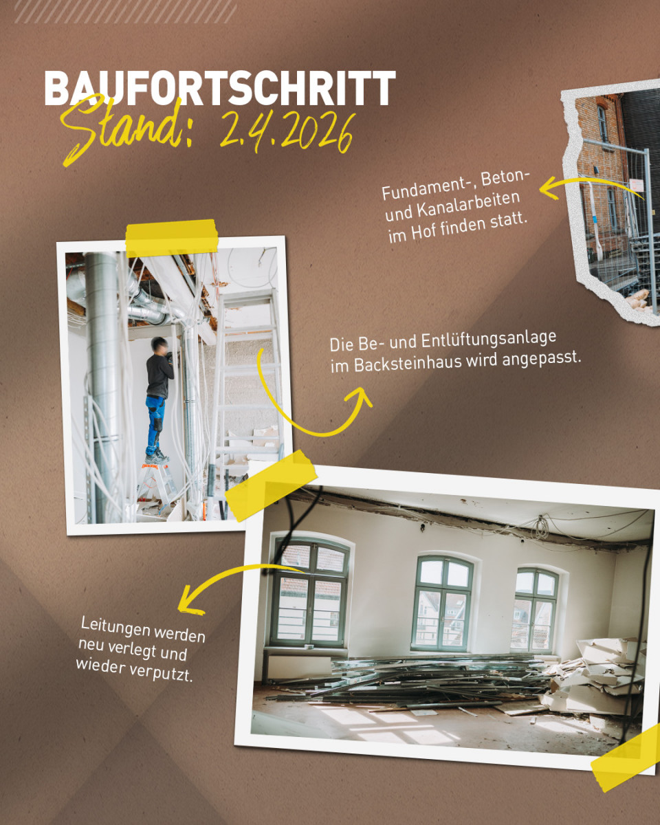 Im März ging es auf unserer Baustelle in Lobeda, nach den vielen kalten Wintertagen, wieder gut voran. Im Hof wie auch im Backsteinhaus wird fleißig gearbeitet. Aber wie erleben eigentlich unsere Schüler*innen das Baugeschehen? Wir haben uns mal umgehört. Außerdem haben wir es geschafft, dass sich der Bauzaun mal geöffnet hat und die Kinder die Baustelle ganz nah erleben konnten.