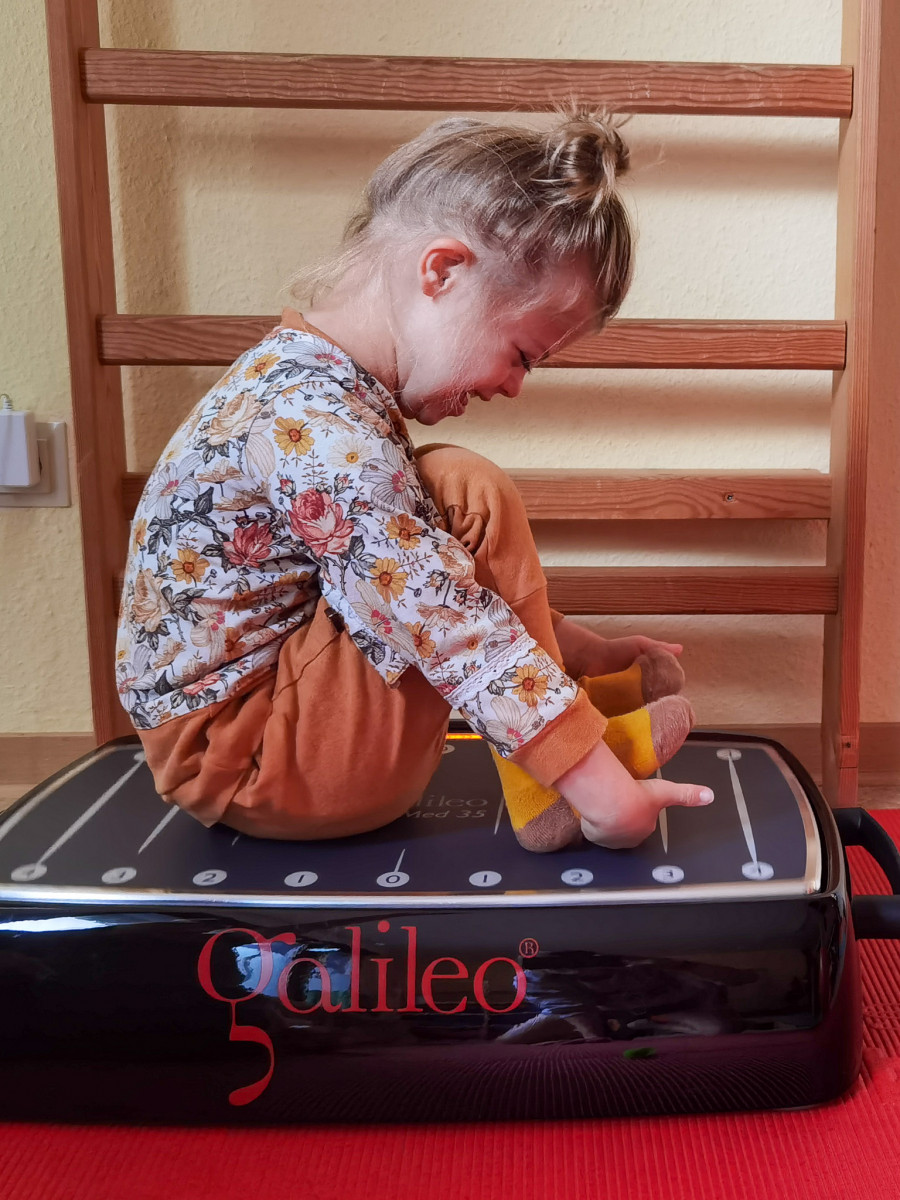 Seit März steht »unser Galileo« in den Räumen der Praxis im Distelweg und erweitert das Therapieangebot auf großartige Weise. Nach der Schulung unserer Physiotherapeutin Christin Born profitieren bereits 20 Kinder davon. Z.B. der 7 Monate alte Leo mit Down-Syndrom: Als wir mit der Therapie begannen konnte er noch nicht sitzen. Anfang haben wirden Jungen auf das Gerät gelegt, später konnten wir ihn drauf setzen und mittlerweile kommt er in die Fortbewegung und kann sich in den Sitz aufrichten. Das Gerät hat seiner Muskulatur Stabilität gegeben, wodurch wir bei seiner Motorik große Fortschritte erzielen konnten.